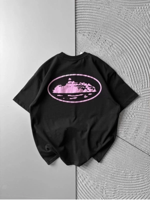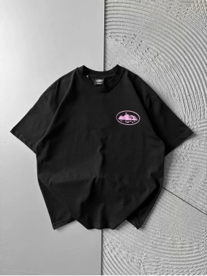 BİSİKLET YAKA CORTEZ BASKI OVERSİZE TSHİRT SİYAH