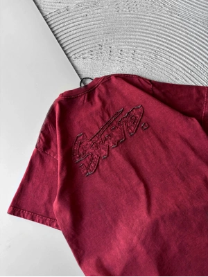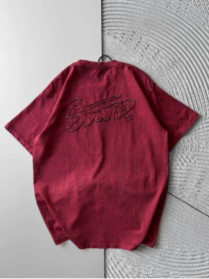 BİSİKLET YAKA YIKAMALI KABARTMA NAKIŞLI OVERSİZE TSHİRT KIRMIZI