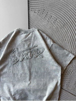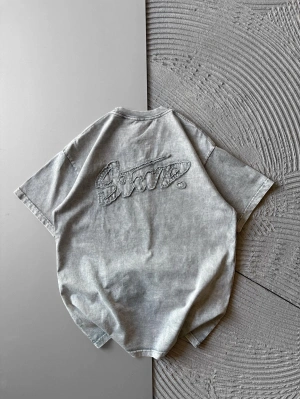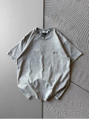 BİSİKLET YAKA YIKAMALI KABARTMA NAKIŞLI OVERSİZE TSHİRT GRİ