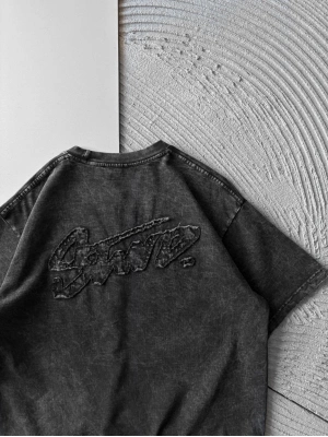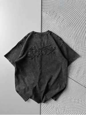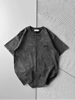 BİSİKLET YAKA YIKAMALI KABARTMA NAKIŞLI OVERSİZE TSHİRT ANTRASİT