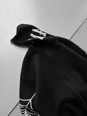 STW BASKI DETAY OVERSİZE HIRKA SİYAH