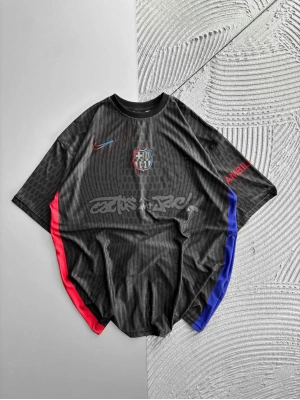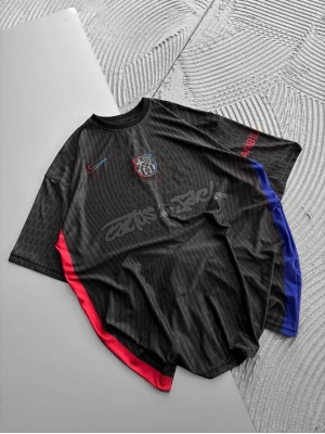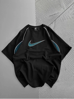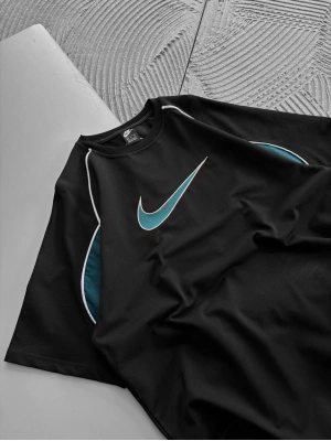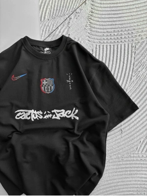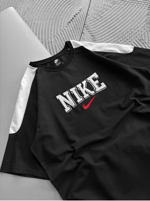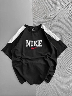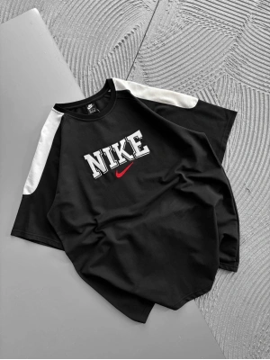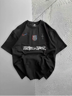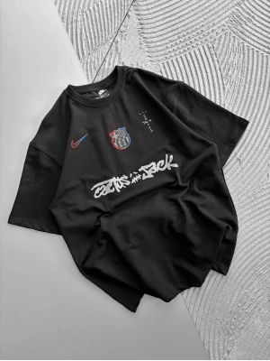 BİSİKLET YAKA NK BARCA NAKIŞLI FORMA OVERSİZE TSHİRT SİYAH