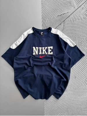 BİSİKLET YAKA NK BARCA NAKISLI ORTA BİYELİ OVERSİZE TSHİRT LACİVERT