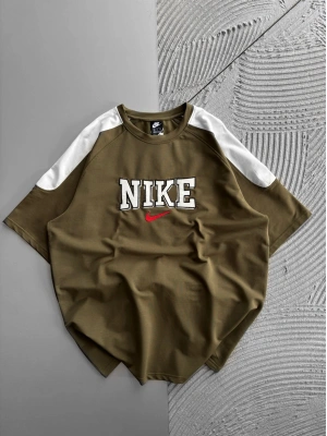 BISIKLET YAKA NK NAKIŞLI KOL PARCA DETAY OVERSIZE TSHIRT HAKİ