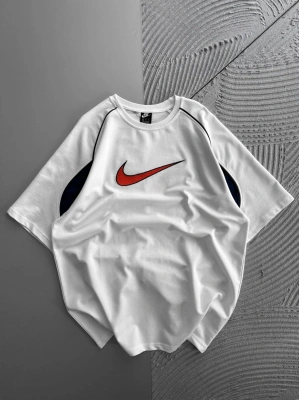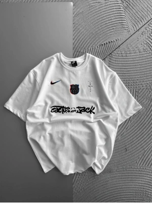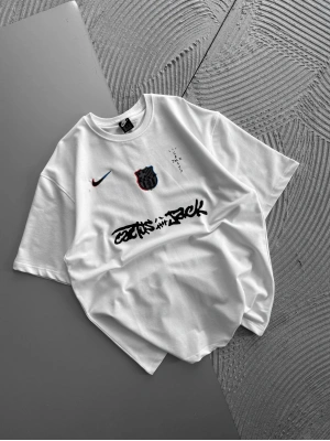 BİSİKLET YAKA NK BARCA HOLOGRAM OVERSİZE TSHİRT BEYAZ
