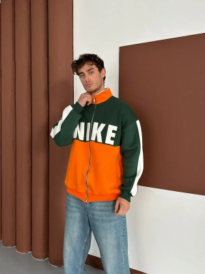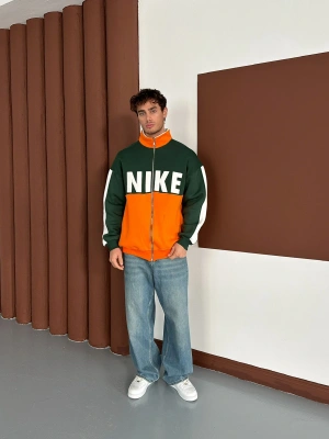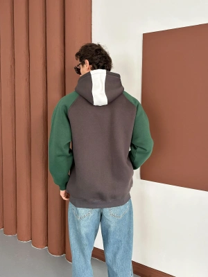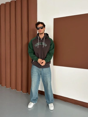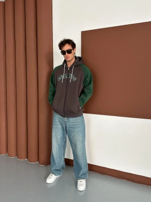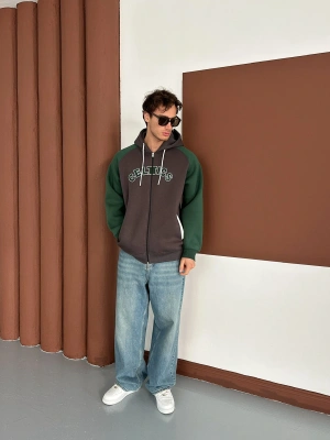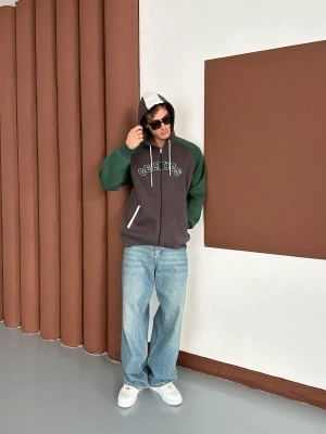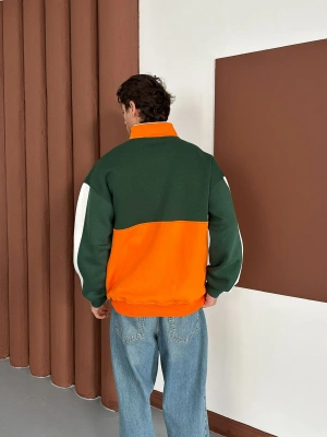 NK NAKIŞ DETAY KOLLAR YARI ŞERİT OVERSİZE SWEAT YEŞİL
