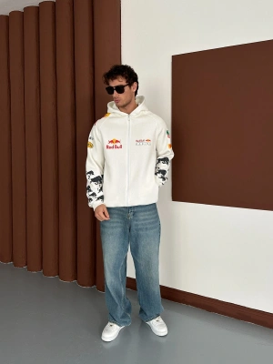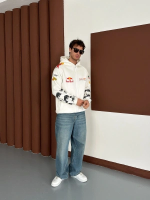 REDBULL OVERSİZE FULL BASKI HIRKA BEYAZ