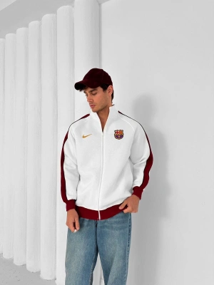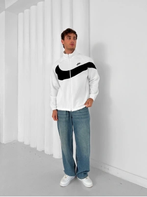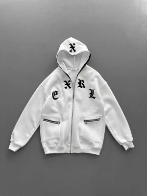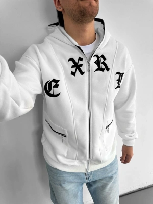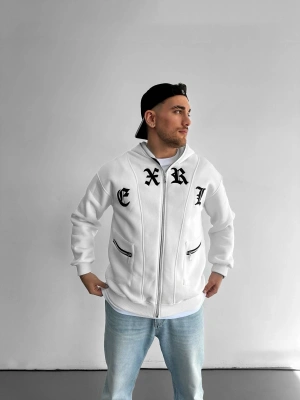 3 İPLİK PAMUKLU KUMAŞ ÇİFT NAKIŞ NK OVERSİZE HIRKA BEYAZ