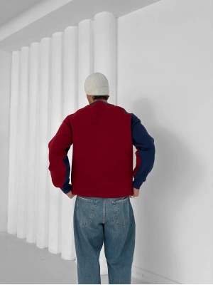 3 İPLİK PAMUKLU KUMAŞ PARÇALI NK OVERSİZE HIRKA KIRMIZI
