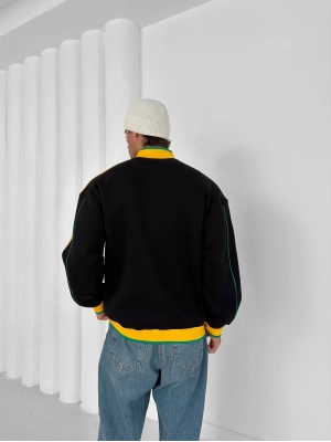 3 İPLİK PAMUKLU KUMAŞ ÇİFT NAKIŞ NK OVERSİZE HIRKA SİYAH