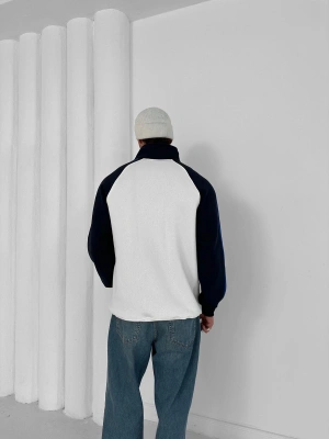 3 İPLİK PAMUKLU KUMAŞ PARÇALI NK OVERSİZE HIRKA LACİVERT
